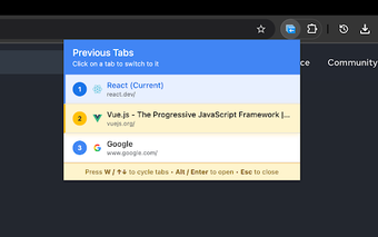 Cette fonctionnalité est particulièrement utile pour les développeurs et les chercheurs qui jonglent fréquemment entre différents documents et aperçus. Avec Previous Tabs, il n'est plus nécessaire de se souvenir de l'emplacement d'un onglet dans la barre supérieure. L'extension offre une expérience de navigation rapide, optimisée et sans encombrement, permettant de se concentrer sur le contenu plutôt que sur la gestion des onglets.